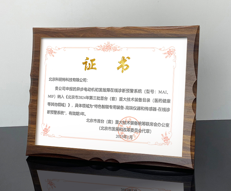 经北京市发改委首台(套)重大技术装备认定联席会办公室组织评审,科锐特凭借其在电机在线状态监测与故障预警领域的突出技术优势与成熟产品应用,顺利通过认定。该项认定旨在鼓励和引导企业瞄准国家重大战略需求和产业发展短板,加大研发投入,突破关键核心技术,打造具有自主知识产权、技术含量高、经济效益好的重大技术装备。